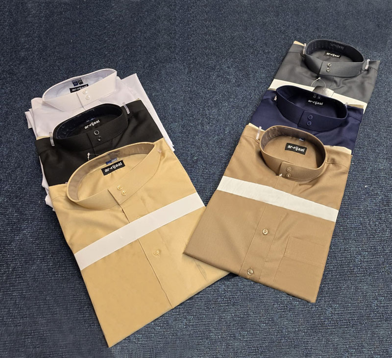 - Button fastening at collar